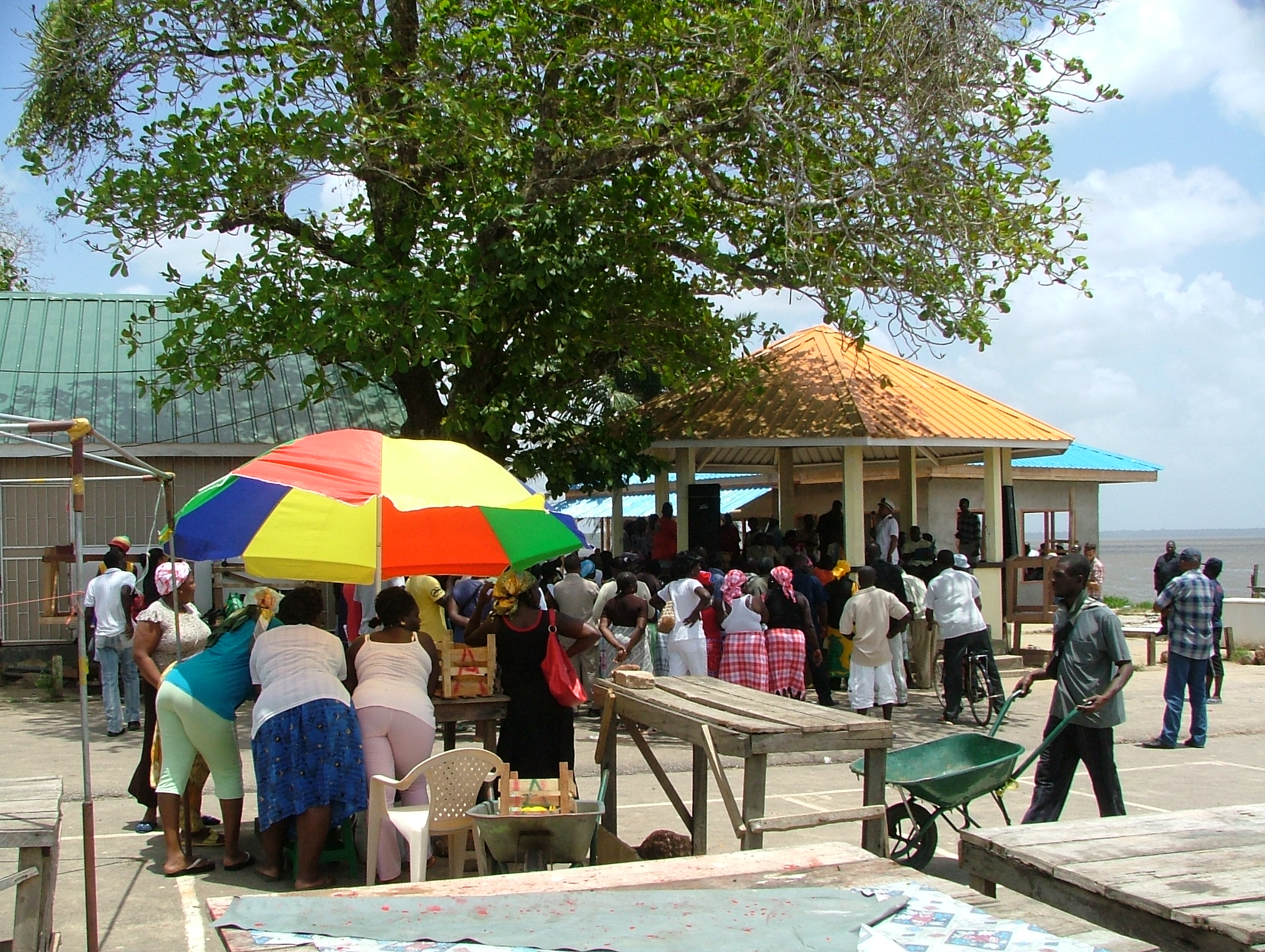 Onderweg naar Albina wordt ons busje aan de kant gezet. Een ogenschijnlijk zeer gewichtige kolonne moet met spoed er langs. Aangekomen in Albina blijkt dit een verkiezingsbijeenkomst te zijn.